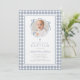 Elegant Dusty Blue Gingham Photo Girl Baptism Inbjudningar