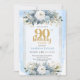 Elegant Dusty Blue Gold 90th Birthday Party Invite Inbjudningar