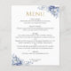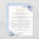 Med det här elegant bröllop-menykortet lägger du till en något sofistikerad bord med blommigtar med mjuka pulverblåa vattenfärger och delikata guld-accenter. Perfekt för romantiskt, trädgårdsmässigt eller klassiskt bröllop är den här menydesignen perfekt koordinerad med fullt Powder Blue & Guld Bröllop Collection.