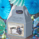 Elegant, dammig blått och guld bröllop fotoaffär. Anpassa enkelt de här bröllopsförmånslådorna med dina bröllop-uppgifter. Våra favoritboxar i personligt bröllp är perfekt för din klassiska dammiga blått och guld bröllopsfest. Tack för den här personligen kan du anpassa lådor till andra tillfälle, t.ex. möhippor.