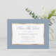 Blåblått kort för elegant och guld-kort med uppgifter om bröllop i guld ram. Dusty Blue och guld bröllop spara datum kort.