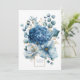Invite your guests with breathtaking elegance using this sophisticated floral wedding invitation. The design showcases a stunning, painterly watercolor bouquet arranged vertically against a clean white background. A magnificent dusty blue hydrangea provides a lush focal point, beautifully complemented by large, soft peony or rose-like flowers in shades of steel blue and creamy white with blue accents. This exquisite arrangement is artfully interwoven with dusty blue-green eucalyptus leaves and delicate sprays of sparkling gold glitter botanicals, adding a touch of modern luxury and magical shimmer. A tiny, minimalist gold frame rests near the base, adding a subtle, sophisticated detail. Perfect for sophisticated weddings (especially with a 'something blue' theme), this design is also ideal for elegant bridal showers, milestone birthday celebrations, anniversary parties, or upscale garden events. This versatile design can also be adapted for sophisticated corporate galas, charity fundraisers, or elegant announcements requiring a touch of refined floral beauty.