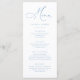 Elegant och modern, dammig blå meny. Fullständig meny för anpassadet för bröllop eller händelsen.