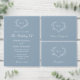 Vår elegant dammiga blåbröllop har en lövgig botanisk andedräkt som omger bruden och brudgummens monogram initialer. Den här inbjudan från elegant bröllop kan vara personlig med din information i ett vackert, vitt kalligrafiskt skript på en dammig blå bakgrund. Kortets baksida visningar ditt favoritfoto på förlovningen.