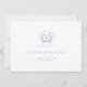 Detta är en elegant, formell och klassisk botanisk vapensköld och bröllop spara datum i dammblått. Det är idealiskt att informera dina gäster om att den stora evenemangsdagen snart kommer.