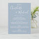 Menykortet för elegant dammigt blått namnteckning bröllop med namnteckning stil namn, det här moderna menykortet kan vara personlig med dina uppgifter i chicens vita bokstäver. Designad av Thisisnotme©