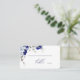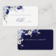 De här platskorten på eleganten har en vacker arrangemang av dammiga blå och vita blommor på rikens marinbakgrund. Utformningen är klassisk och modern och skapar den perfekt för alla bröllop stil.