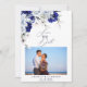 Elegant Dusty Blue Navy Blommigt Bröllop Spara Datumet