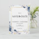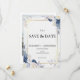 Elegant Dusty Blue och Guld Blommigt Bröllop Spara Datumet