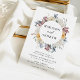 Ange tonen för din speciella dag med vår inbjudan till bröllopsinbjudan till elegantens blommigt. Den här fantastiska designen har en elegant ram i namn som är utformad av en känslig krans av vilda blommor i mjuka nyanser av dammig blått, burgundi, mauve, guldfärgad gult och grädde. Anpassa de här inbjudningarna till andningsbröllop med blommigten med dina bröllop-detaljer som visas på ett vackert sätt nedan. Utformningen är slutförd med en solid mörk blått baksida, vilket ger en något sofistikerad bild. Perfekt för par som vill ha tidlös och romantisk stationär bröllop med botaniskt tema!