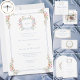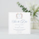 Step into a world of timeless elegance with our exquisite Baroque wildflower wedding save the date card. A regal crest, adorned with your initials, sits at the center of this design, encircled by soft pastel watercolor blooms and a delicate ribbon. A refined dusty blue border encloses your wedding details in sophisticated harmony. Perfect for couples who seek a design that whispers luxury, romance, and the charm of old-world grandeur. Let your wedding begin with a design as breathtaking as the day itself. Created by Simply Farmhouse Press.