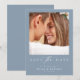 Elegant Dusty Blue Photo Bröllop spara datum Datumet
