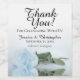 Dessa vackra vin flaska-märken är perfekten till er bröllop firande. Utformningen har en enda dammig blek, dammig, blå färgad ro som reflekterar i bassäng i vatten med krusningar och vågar. Rubriken lyder: Tack för att du firar med oss. Det finns utrymme för bröllop-parets namn, datumet bröllop och typen av vin eller annat innehåll i flaska.