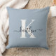 Den här enkla, dammiga eleganten blå 20-tums dekorativ kudde med det första namn i ett trendig-skript i svart och det första i ett modernt sockelteckensnitt i vitt är perfekt för dig. Det är snyggt och trendig och ändå väldigt klassiskt. Det kommer att se fantastiskt ut i ditt sovrum, vardagsrum, visningsrum, hon spillde.
