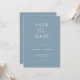 Vackert och elegant dammig blått Spara datumet. Fullt anpassade med namn, data, plats och färg för att matcha ditt bröllop-tema.