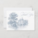 Make your wedding timeless with this elegant dusty blue vintage toile wedding thank you card design. Featuring a detailed manor and estate sketch by the water, it is perfect for a sophisticated ceremony. This classic look adds a refined touch to your historic home or garden celebration. Created by Simply Farmhouse Press.