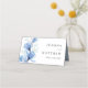 Ett elegant, dammigt blått, genomskinligt platskort för blommigt bröllop, personlig med briden och brudgummen i namn och speciella datum. Designad av Thisisnotme©