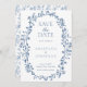 Lägg märke till din speciella dag i ett sofistikerat stil med vår Elegant Fransk Blue Vintage Victorian Blommigt Bröllop spara datum. De här korten är en perfekt blandning av klassisk och contemporary-estetik och är konstruerade med en kompakt utformning av blommigten och en tidlös palett med Fransk blå färg. På kortets framsida finns de viktigaste detaljerna i ditt evenemang, som är försedd med en mycket vacker blommigt gräns. Tvärtom, ett kompletterande blommönster för eleganten. Försköna ert tillkännagivande i bröllop med en elegant som anger tonen för er stora dag!