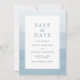 Den här vackra och dammiga blåa eleganten sparar datuminbjudan med en vattenfärgsmålad ombre-bakgrund med vit gräns. Baksidan av inbjudan har samma blå vattenfärgsbakgrund. Detta är en del av Watercolor Ombre-samlingen som kan visas genom att klicka på samlingslänken ovan.
