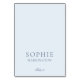 Elegant dusty blue wedding place card featuring refined typography and a timeless minimalist layout. Designed to help guests easily find their assigned table while complementing sophisticated wedding décor.