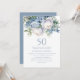 Elegant Dusty Blue White Blommigt 50:e födelsedage Inbjudningar