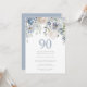 Elegant Dusty Blue & White Blommigt 90:e Födelsedagsfest inbjudan - även tillgängligt som digital inbjudan Se matchningssamling i Niche and Nest Store
