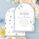 Elegant Dusty Blue Wildblomme Möhippa Arch Inbjudningar