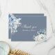 Share your heartfelt appreciation with this elegant dusty blue wildflower wedding thank you card. Featuring a refined deep blue background with soft white floral accents and delicate script typography, this design offers a timeless and sophisticated look.