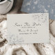 Meddela ditt vinter-bröllop i stil med den här eleganten dammiga blått spara-till-datum-kortet med vintage botaniska blommigtar och modern typografi. Den minimalistiska layouten, silver-grått-accenterna och de ömtåliga blombilderna ger en förfinad ton - perfekt för ett romantiskt säsong firande. Fullständigt anpassade med information om och datum för bröllop. Stil: Elegant ・ Vintage ・ Vinterblått: Dusty Blue ・ Silver Grått ・ Ivorialformat: Flat kort (Vågrät)