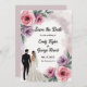 Den här blommigten med elegant vattenfärg sparar datumet inbjudan är perfekt för ett modernt bröllop. Den romantiska designen har en elegant vattenfärgsbild i ram med en blommigt med brud- och groombild och svart kalligrafi på vit bakgrund.