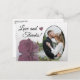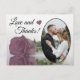 Detta vackra vykort är ett enkelt men tänkvärt sätt att tacka gästerna i bröllop. Den har en fin design med ditt foto från bröllop i ett ovalt format ram och en enda lång dammig msug rosa färgad ro som reflekterar i bassäng i vatten. Bildtexten lyder "Kärlek och tack" och det finns utrymme för din anpassningsbar på baksidan och din namnteckning.