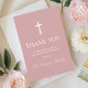 Simple and elegant baptism thank you card featuring a dusty rose background and white cross design. Perfect for sharing gratitude after your special day. Easily personalize with your own message.