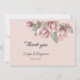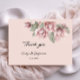 Floral wedding Thank You Card. Shades of rose, pink and blush colour palette. Flowers and greenery composition. This charming design features delicate dusty rose flowers on a soft pastel background, perfect for setting a romantic and sophisticated tone for your wedding.