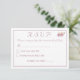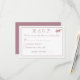 Design front features an elegant heading displayed at top in a lovely silver color displayed against a white background. The images of the Sacred and Immaculate Hearts of Jesus and Mary are pictured at right. Your text is featured in a dusty rose color and follows the traditional format for a Catholic wedding response card. Entire design is framed with an elegant matching border.