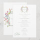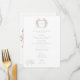 Step into a world of timeless elegance with our exquisite Baroque wildflower wedding menu. An elegant crest adorned with a wreath of soft pastel watercolor blooms sits at the pinnacle of the menu, while menu details appear in dusty sage green, in sophisticated harmony. Perfect for couples who seek an invitation that whispers luxury, romance, and the charm of old-world grandeur. Let your wedding begin with a design as breathtaking as the day itself. Created by Simply Farmhouse Press.