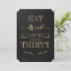 Elegant Guld EAT DRINK och vara en tredje födelsedag. Den har elegant faux guld "EAT drink AND BE TRETY"-typografi, prydnadsföremål, på en svart texturerad bakgrund. Använda Anpassa verktyg för att lägga till din information.Om du vill ha mer information går du till min EAT DRINK FÖDELSEDAGSFEST Collection.