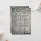 EAT dricker och är gift med inbjudningskort för Bröllop Firande - Elegant med skript, Vintage champagneglas och String Ljus på Rustic Wood Background. En Perfekt för din stora dag! Alla textstorlekar i Stil, Färg kan anpassas efter dina behov.