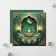 Elegant Eid Mubarak Crescent Mosque Blommigt Grönt Julkort