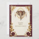 Ett lyxigt bröllopskort för indiska bröllop. Elefanten anses vara en bra omen och är associerad med Lord Ganesha. Designen har en guldbårdad vinröd ram och blomster motiv. Texten kan enkelt ändras från platshållarna. Perfekt för moderna och traditionella indiska bröllop.