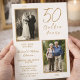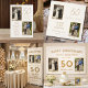 Fira en verkligt speciell milstolpe med vår elfenbens- och guld-färgade 50-årsjubileumsinbjudan för "Golden Years", utformad för att hedra femtio år av kärlek, engagemang och älskade minnen. Perfekt för en förnyelseceremoni eller en elegant jubileumsfest, fångar denna inbjudan vackert en livslång resa. Med en klassisk elfenbensvit bakgrund med lyxiga guldfärgade accenter, en "då och nu"-fotoutformning och elegant typografi är denna inbjudan perfekt för att fira ett pars gyllene jubileum med stil.