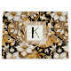 En sofistikerad blommigt på svart avtryck av grå elfenbensblommor och scrollsar av guldbrunt.