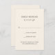 Modern bröllop OSA-kort med enkel och minimal design med ditt svarstid i ett handskript för contemporary. Baksidan har ditt monogram. Paletten färg är krämig och kan ändras i designredigeringen av verktyg. Denna contemporary fungerar bra för alla stil i bröllop.