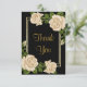 Snygg design för kvinnor. Elegant, glamorös och sofistikerad anpassningsbar personlig tack vare dina kort med en söt romantisk visning av hörnbukett av elfenben ro och grönenergi, med en söt blank glitter i guld dubbla ram som alla är tryckta på svart bakgrund. Motsatsen har samma utformning som har utvidgats för att skapa tillräckligt med utrymme för ditt personliga tackmeddelande. Det här är ett vackert designat tack för födelsedagar eller hur som helst, med söta, snyggt, giftiga blommor i elfenben färg. Kort för perfekt till firande för kvinnor och flickor. Ett modernt, modernt mönster med ett sofistikerat romantik-utseende. Jag har också matchande inbjudan och andra party-tillbehör i min butik.