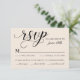 Ett elegant RSVP-kort med inbyggd måltidsval, perfekt för att koordinera din middagsmottagning. Djärv kalligrafi och raffinerad serifstil på en varm elfenbensvit bakgrund håller utseendet klassiskt och sammanhängande med din krämfärgade bröllupssvit. All text är helt redigerbar — anpassa svarsdatum, menyalternativ och formulering för att passa din meny.