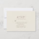 Vår elfenbensvita bröllops-RSVP-kort blandar minimalistisk modernitet med chic elegans. Med en enkel kalligrafiskrift på framsidan och en unik romantisk guldfärgade kärleksfåglar-illustration på baksidan, ger detta kort en förfinad touch för att bekräfta dina gästers närvaro.