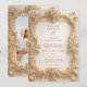 Elegant Baroque Gold Photo Frame Wedding Invitation. Announce your special day with this exquisite wedding invitation, featuring an opulent, ornate floral photo frame design. The elegant, embossed-like border frames your cherished photo, adding a touch of vintage romance and sophistication to your announcement. This chic invitation is perfect for couples seeking a timeless and luxurious feel for their wedding stationery, setting a beautiful tone for your celebration to come. The intricate detailing ensures your invitation stands out, making a memorable first impression for your guests.