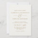 Den här inbjudan från elegant bröllop har en modern chic. Framsidan är en kräm med modern guld typografi, medan baksidan är en rik som framträder grönt med initialer i en guld typografi.