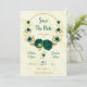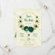 elegant romantic emerald grönt blommor och guld löv på guld krans utom datum Datuminbjudan Närmare glitter simuleras