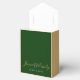 Vackra guld och emerald grönt-favoritboxar. Du kan anpassa den här eleganten och skapa en favoritruta för grönt och guld-bondfåglars bröllop med texten i typsnittet stil du gillar, lägga till en bakgrund färg och ändra menyfliksområdet färg.