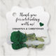 Dessa vackra favoritmärken är ett fantastiskt sätt att tacka ledamöterna i brudens sida, speciella gäster eller familjemedlemmar. Elegantens utformning är ett vackert foto av en enda grönt ro i färgad i som sedan lång tid tillbaka reflekterar i bassäng i vatten. Skriptet i finare lyder "Tack för att du firar med oss!" med utrymme för namn/namnteckning nedan.